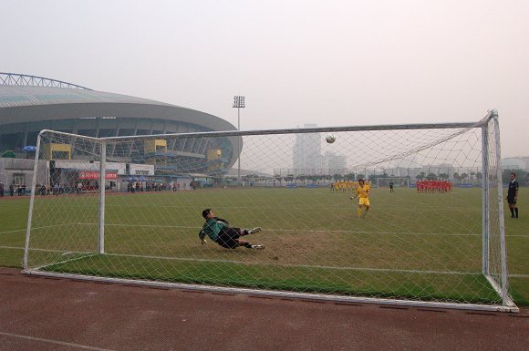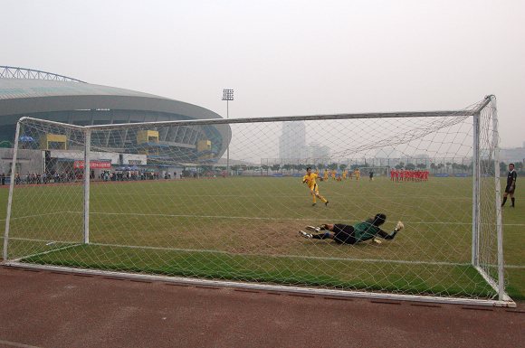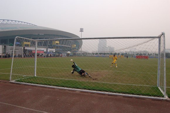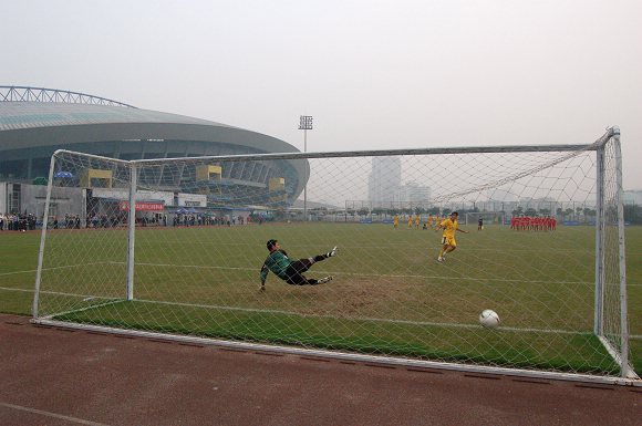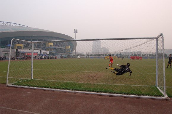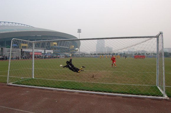 让我们再回顾一下激动人心的冲甲之战的点球决战过程吧。首先是天津火车头队罚点,由于压力过大,这位对方的场上核心队员竟然第一个罚球就将球罚飞了~~~