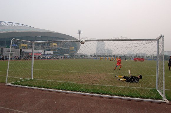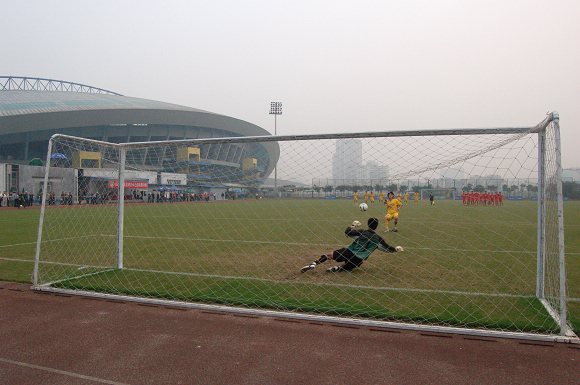 可惜的是我方第二个出场的队员王续射门太正,被对方守门员扑出,双方回到了起跑线上,两轮罚球之后,双方各进一球。