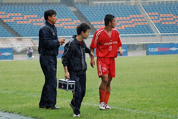 这时场上的小雨也逐渐变为了中雨,直到上半场结束,场上比分没能再有变化。