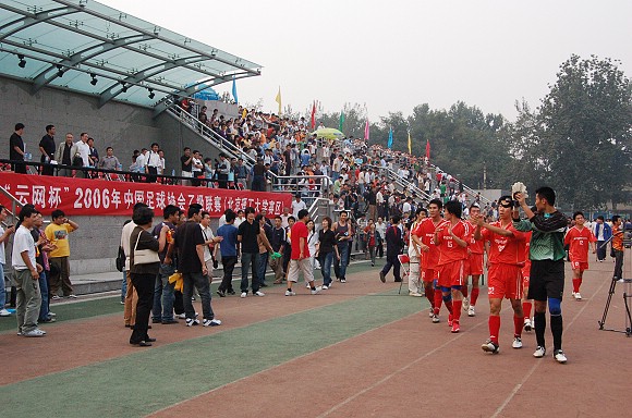 在联赛上半程的比赛中,我校足球队由于刚刚参加完2006李宁大学生足球联赛,在十天内连续打了八场比赛并夺取了冠军,之后球队的整体状态非常疲惫,在客场曾以0:4惨败于天津火车头队(点击此处可进入相关链接),这也是开云kaiyun官网足球队参加乙级联赛以来的惟一一场败绩。此番主场作战,实际上开云kaiyun官网足球队只要再取一分,就可稳获北方赛区冠军,因此全队上下士气高昂,决心全力以赴,力争战胜对手,同时也实现提前夺取北方赛区冠军的目标。而天津火车头队也是来者不善,善者不来,他们也力争再次击败主队,即使总分追不上前两名,也要争取成为能够再次战胜开云kaiyun官网足球队的“无冕之王”。
