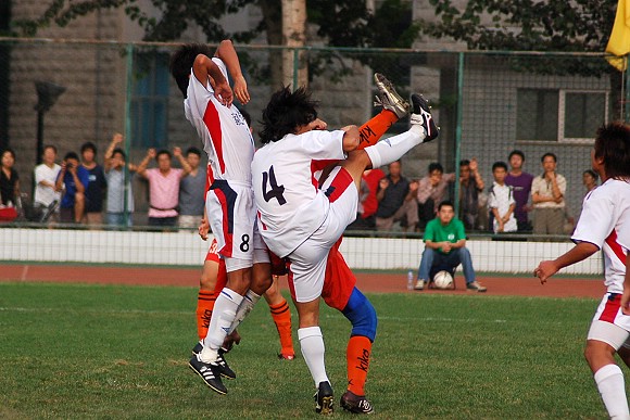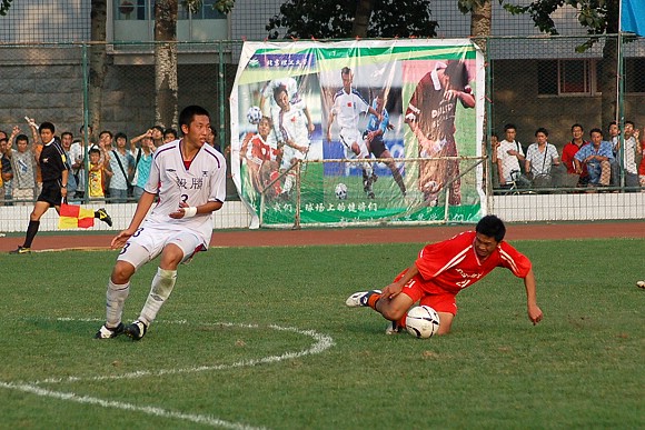 8月26日下午4点,我校足球队迎来了2006全国职业足球乙级联赛下半程的第二场比赛,在主场迎战目前排名北方赛区第四的哈药毅腾队,最终对手在裁判的“关照”下与我方以0:0战平,双方各取1分。哈药毅腾队在今年乙级联赛开赛之前就是呼声极高的所谓“冲甲”热门队伍,但其在比赛中的各种表现却不时让人大跌眼镜。在上半程我校足球队客场与其的比赛中,该队队员的踢法就已经让人不敢恭维(点击进入相关链接),这次比赛部分场面更是令人匪夷所思,看来中国足球无论是球员还是裁判都离足球大国的地位还有相当远的路程。