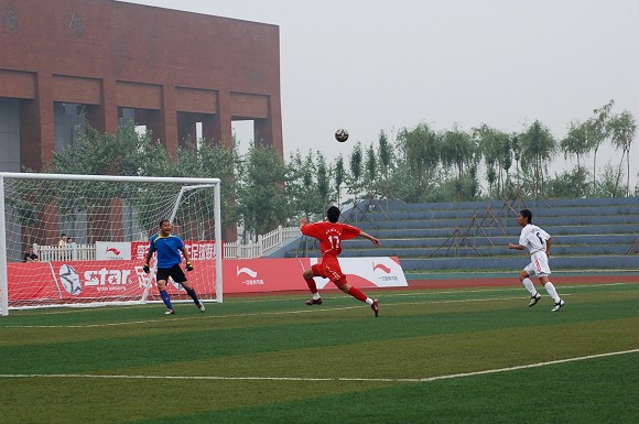 在比赛的最后几分钟里,沈阳工业大学的部分队员急躁情绪严重,严重犯规接二连三,场上火药味甚浓,但我方队员一直比较克制,使1:0比分一直保持到了最后时刻。