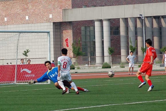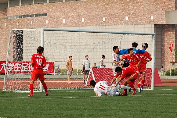 7月7日下午,我校足球队在沈阳理工大学足球场迎来了李宁杯第六届中国大学生足球联赛的半决赛,对手为东华大学足球队。东华大学队可谓是我校的老对手,在2004年全国大运会的足球决赛中与我校足球队战成平局,最后靠点球大战获得冠军,我校足球队屈居第二(点击进入相关报道)。在2005年飞利浦第五届中国大学生足球联赛的半决赛中,由于我校足球队处于新老交替时期,再次以0:2告负东华大学队(点击进入相关报道),在三、四名决赛中又负于同济大学队从而名列第四(点击进入相关报道),而东华大学队则在决赛中战胜中国人民大学队获得冠军。