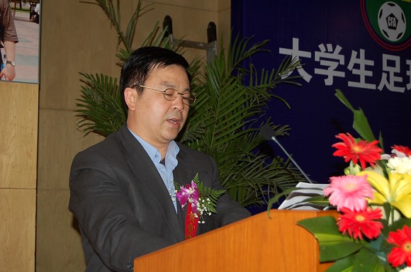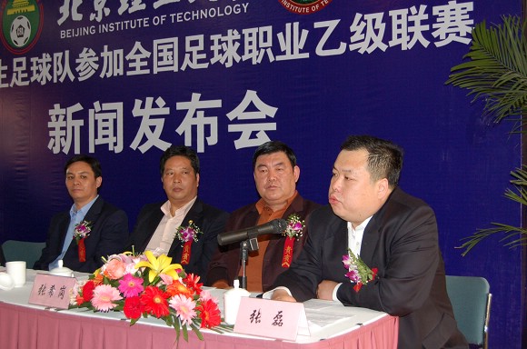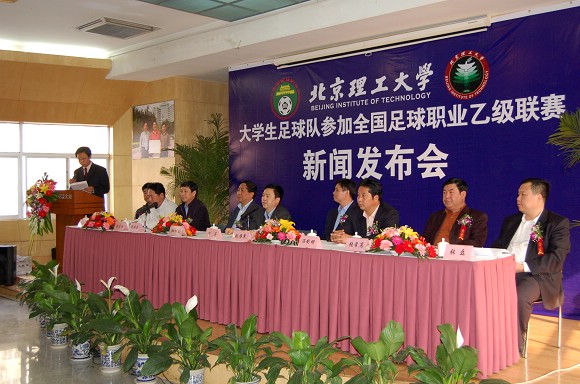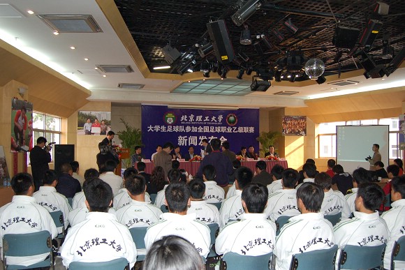 北京市大学生体育协会主席、我校党委副书记、副校长杨宾讲话,介绍了我校大学生足球队的诞生、发展、成绩与现状,并希望透过今年参加全国足球职业乙级联赛来磨炼队伍、达到进一步提升水平的目标。