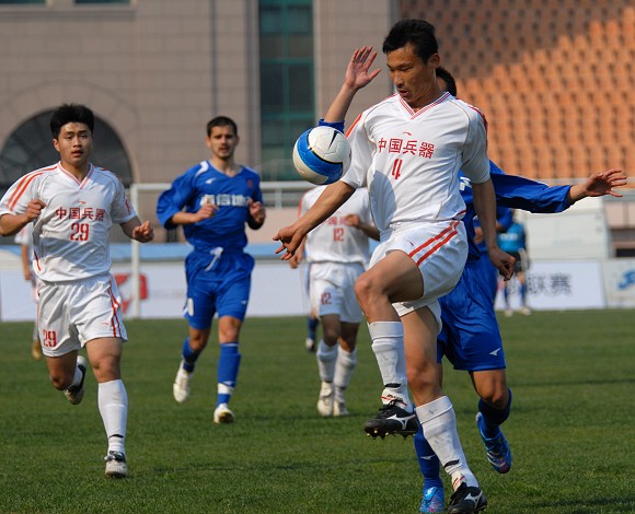 比赛前20分钟,在球迷的呐喊助威声中,爱国者大学生队与完全高于自己实力的青岛海利丰一直保持均势,双方互有攻守。第20分钟,青岛海利丰改变战术,提前换人,试图改变局势,让青岛海利丰的进攻稍有起色。
