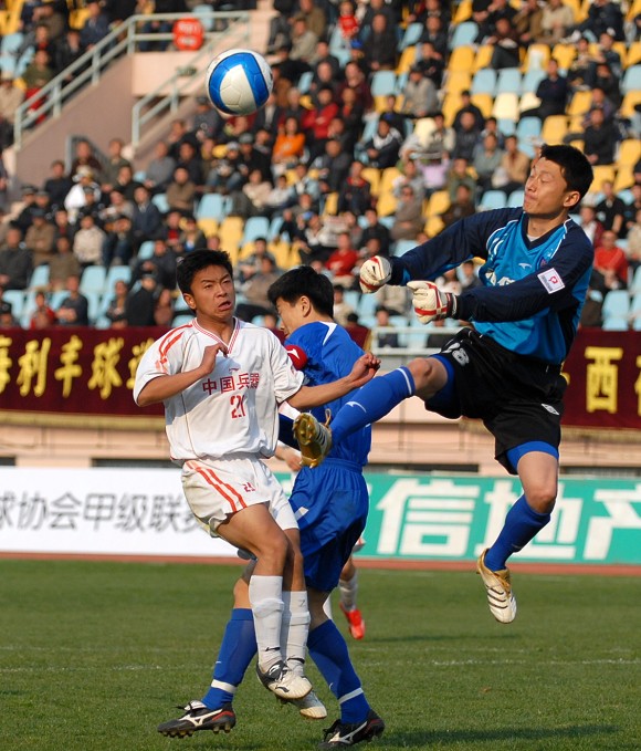 第30分钟,爱国者大学生队获得前场任意球,球打在人墙上弹回,青岛海利丰获得单刀机会,爱国者大学生队1号守门员王毅果断出击,化解此次进攻。