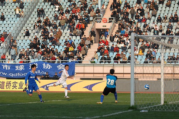 第64分钟,青岛队获得一个位置绝佳的任意球机会,青岛队丁伟主罚,球绕过人墙进入球门,青岛队2比0再下一城。