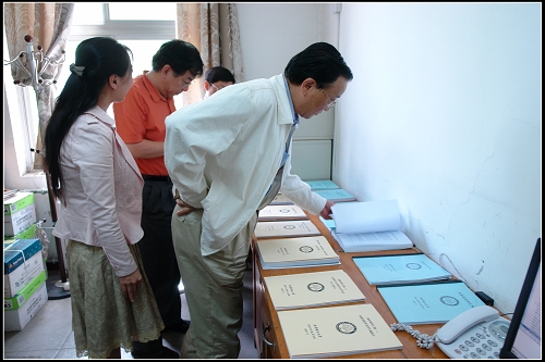 汇报结束后,匡镜明校长一行在学院领导的陪同下检查了学院评估办公室、图书资料室和部分实验室。