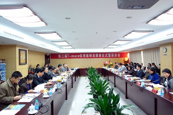 11月27日上午,我校在国交三层第一会议室召开了第三届“T-more优秀教师奖”颁奖暨座谈会。校党委书记郭大成,党委副书记侯光明,百仕达控股有限公司董事局主席、“T-more基金”理事长欧亚平先生,“T-more基金”执行理事厉一凡女士出席了会议;获奖教师、部分T-more督导专家和相关职能部门负责人参加了会议。会议由校长助理、教务处长庞思勤主持。