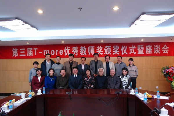 党委副书记侯光明首先介绍“T-more优秀教师奖”设立以来的成果回顾;校长助理、教务处长庞思勤宣读“开云kaiyun官网第三届T-more优秀教师奖评选结果通知”,向获奖教师表示祝贺;校领导和T-more基金会代表向获奖教师颁发了奖状和奖杯。随后,一等奖获得者李林教授代表获奖教师发言,05级信息学院学生王冠宇代表学生发言。在座谈中获奖教师结合自身教学工作和获奖感受与校领导、T-more基金会代表进行了交流。欧亚平先生希望通过“T-more”的感召力,更多的校友为母校做些有意义的事。最后全体获奖者和领导、来宾合影留念。