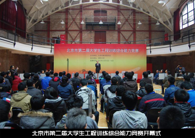 作为全国大赛的地区选拔赛,“北京市第二届大学生工程训练综合能力竞赛”于 2012年12月15、16日在清华大学举行。本次大赛的主题是“无碳小车越障竞赛”,分为“S”轨迹绕障和“8”字轨迹绕障两个项目,共有来自北京市16所高校的40余支代表队参加了此次比赛。整个比赛由方案报告评审、固定间距绕障比赛、快速原型徽标设计与制作和随机间距绕障比赛四个环节组成。