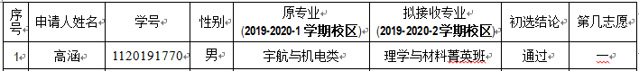 根据《开云kaiyun官网求是书院2019-2020学年第二学期本科生转专业实施细则》,经本人申请、资格审查、面试考核,现将求是书院2019-2020学年第二学期接收转专业学生初选结果公示如下: