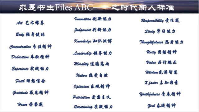 与“知行讲堂”同时进行的,是求是书院三全导师培训。培训由求是书院副院长张舰月主持。张舰月首先介绍了求是书院三全导师制的整体情况,并明确了各类型导师在思想引领、人文关怀、学业指导和学术引导等方面的不同职责,并提出了工作要求与建议。随后解读了“求是书生Files ABC计划”,旨在达成的时代新人标准,也希望三全导师们以此为目标,共同努力培育能担当民族复兴大任的时代新人。求是书生Files ABC之时代新人标准由26项组成,每一项的英文名称首字母刚好对应了英语中从A到Z的26个字母。求是书生的时代新人标准既融合了求是书院的育人目标、院训院风,又融合了时代新人标准大讨论中的高频词汇,体现出鲜明的“求是”特色。
