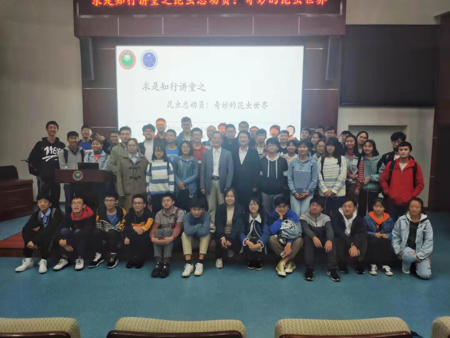 首先,彩教授从昆虫的定义讲起,通过生动的描述让同学们清晰掌握了昆虫的科学定义,凝练昆虫种类多、历史长、数量大、分布广的特征,并指出昆虫是世界上最大的类群。其次,彩教授以蜜蜂等益虫为例,介绍了昆虫对人类社会发展的重要性,通过介绍人类历史上防治蝗虫等害虫的史料记载,证明人类研究昆虫的重要性,他同时强调,正是在毛主席等新中国第一代领导集体的带领下,破解了病虫害难题,将思政教育巧妙融合于科普教育之中。最后,彩教授从中国传统文化方面着眼,展示与昆虫相关的传统节日多达2000个,通过重点介绍,深入诠释昆虫在人类社会发展过程中所产生的文化影响深远绵长。