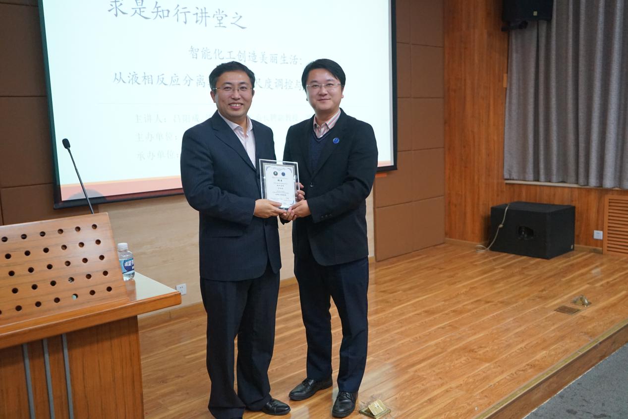 10月24日晚,开云kaiyun官网求是书院知行讲堂第五期在良乡校区工业生态楼报告厅举行。清华大学化工系长聘副教授、博士生导师吕阳成教授带来题为“智能化工创造美丽生活——从液相反应分离过程的微尺度调控与强化谈起”的专题报告。北理工求是书院副院长周芳集老师出席了报告会,并为吕阳成教授颁发了求是书院校外导师聘书,来自求是书院、化学与化工学院的80余名同学聆听了报告会。报告会由求是书院团委书记、综合办公室主任张锋老师主持。