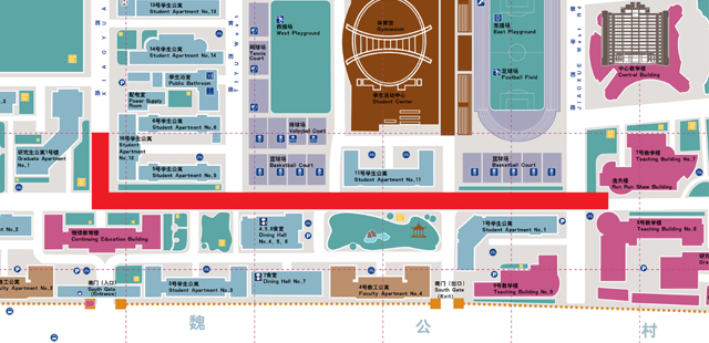 2015年7月13日至8月底,中关村校区校园南路进行破路施工,具体施工路段自硕博小区东南门至逸夫楼。由于校园南路是中关村校区南边重要的交通干道,此次破路施工将会影响部分车辆通行。为了保证施工期间的人员与车辆安全,同时也保障工程的有序进行。在施工期间,进入西南门车辆只能行驶到2号教师公寓、3号学生公寓、新食堂以及4号教师公寓,并由东南门驶出,若去往学校其他地点请绕行学校其他大门进出。请广大师生、车主提前规划好自己的行车路线。