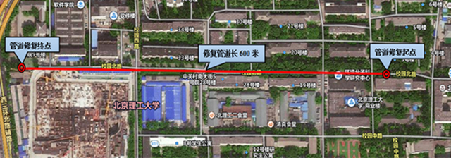 涉及我校排水管道改造工程共10个井位9段,施工方法为UV内衬依次分段施工,不破坏路面,在管内采用穿插法和原位固化法对原有管道进行加固修复,长度约600米。具体施工路段详见下面示意图。
