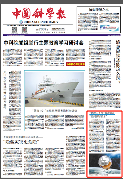 编辑:吴楠 审核:王征 阅读次数:原文标题:“北理工1号”首次验证“空间帆球技术”