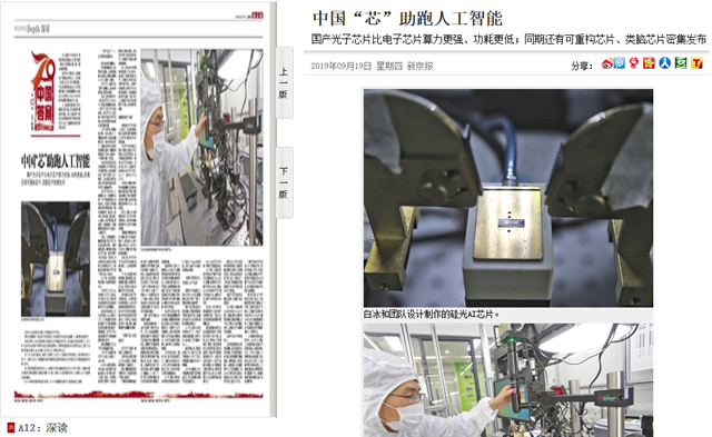 光子芯片如何与人工智能搭上边?白冰解释,如果一个芯片跑得非常快、非常省电,一定是芯片的物理结构与软件高度匹配,才能实现高效率。现在的人脸识别、自动驾驶、安防监控、AI金融、AI医疗等功能,都依赖人工智能算法,一款能跟算法匹配的芯片,就是人工智能芯片。