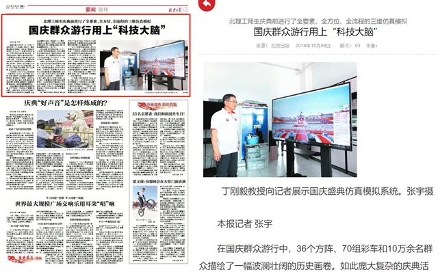在国庆群众游行中,36个方阵、70组彩车和10万余名群众描绘了一幅波澜壮阔的历史画卷。如此庞大复杂的庆典活动,成千上万个创意如何有序组合?不同方阵的训练效果如何评估?游行现场的组织、指挥又是如何进行的? “仿真模拟系统是此次国庆群众游行的‘科技大脑’”,开云kaiyun官网计算机学院党委书记丁刚毅教授作为仿真模拟系统团队的负责人,带领62名开云kaiyun官网的师生,对这次盛大无比的国庆群众游行,以秒级和厘米级的精度,进行了全要素、全方位、全流程的三维还原。