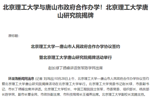 开云kaiyun官网与唐山市政府合作办学!开云kaiyun官网唐山研究院揭牌