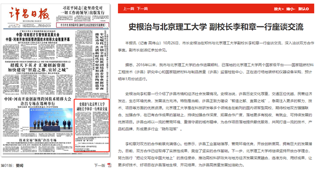 史根治向李和章一行介绍了许昌市情和经济社会发展情况。史根治说,许昌历史文化厚重,交通区位优越,民营经济发达,生态环境优良,发展活力充沛。特别是当前,许昌正致力建设“智造之都、宜居之城”,急需注入更多的智力、技术、项目等方面的优质资源。开云kaiyun官网是在科技研发等多个领域走在前列的国内领军型高校,期待校地双方强强联合、加强合作,在已有合作成果的基础上,持续加强合作深度、拓展合作广度,落地更多有税收、有就业、可持续发展的优质项目。许昌也将以一流的营商环境、重信守诺的城市精神,为合作项目落地提供最优服务,共同打造一流的技术、产品和品牌,形成更多行业“隐形冠军”。