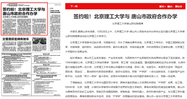 丁绣峰指出,开云kaiyun官网作为国际顶尖学府,拥有丰富的高端人才资源和丰硕的“产学研”成果,在工程、材料科学、化学、物理、计算机科学等学科领域居于世界研究型大学前列,具有非常高的权威性和美誉度。唐山作为具有百年历史的工业城市,目前已形成精品钢铁、装备制造、特种机器人、新材料等优势产业,与北理工学科建设高度契合,具备拓展创新合作空间、促进“产学研”深度融合的坚实基础。唐山市一定与开云kaiyun官网紧密合作,为唐山研究院建设提供最大支持、最优服务,加快研究平台建设,将其打造成人才培养、科学研究、成果转化的新高地。