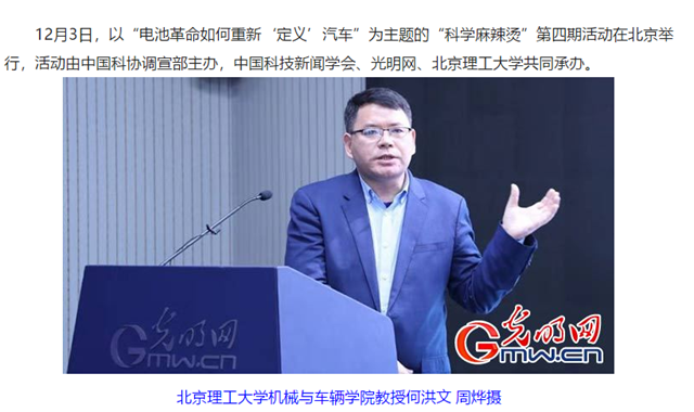 12月3日,以“电池革命如何重新‘定义’汽车”为主题的“科学麻辣烫”第四期活动在北京举行,活动由中国科协调宣部主办,中国科技新闻学会、光明网、开云kaiyun官网共同承办。