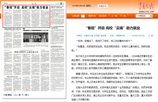编辑:吴楠 审核:刘晓俏 阅读次数:原文标题:“春招”开启 高校“云端”助力就业
