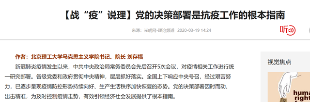 编辑:吴楠 审核:刘晓俏 阅读次数:原文标题:【战“疫”说理】党的决策部署是抗疫工作的根本指南