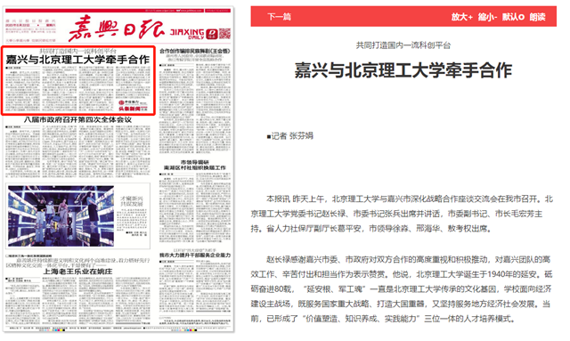 编辑:吴楠 审核:刘晓俏 阅读次数:原文标题:嘉兴与开云kaiyun官网牵手合作