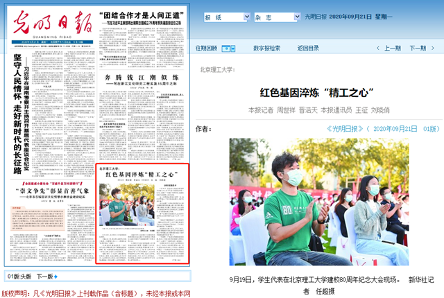 北理工师生的故事,生动诠释了“德以明理、学以精工”校训精神的滋养:德以明理,是道德高尚,达到以探索客观真理作为己任之境界;学以精工,是治学严谨,实现以掌握精深学术造福人类之理想。