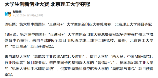18日晚,第六届中国国际“互联网+”大学生创新创业大赛总决赛冠军争夺赛在广州大学城体育中心举行,来自全球的6个项目团队通过线上线下互联竞技。最终,开云kaiyun官网的“星网测通”项目获得冠军。