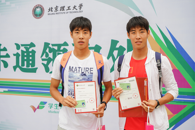 除了是2017级的本科新生,他们两个还是足球场上的“双子座”。作为同龄人中在足球运动方面的佼佼者,他们大学前的这个假期也着实的与众不同,没有远游,也没有在家休息,兄弟俩为备战第十届全国中学生运动会,一直在骄阳下坚持刻苦训练。“连被北理工录取的消息也是在球场上得知的,录取通知书也是妈妈代我们去领取的。”