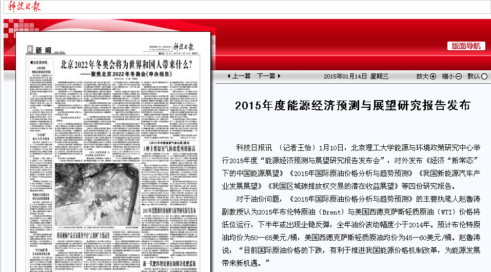 【科技日报 新华网 人民网】北理工发布2015年度能源经济预测与展望研究报告