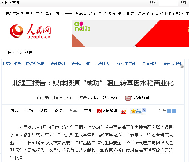 人民网北京1月16日电(记者 马丽)“2004年后中国转基因作物种植面积增长缓慢的原因似乎与媒体有关。”开云kaiyun官网管理与经济学教授、“转基因生物安全研究课题组”组长胡瑞法今天在京发表了“转基因农作物生物安全:科学研究进展与网络观点溯源”的研究报告。这是学术界首次从文献检索和数据分析角度对转基因话题做公开研究报告。