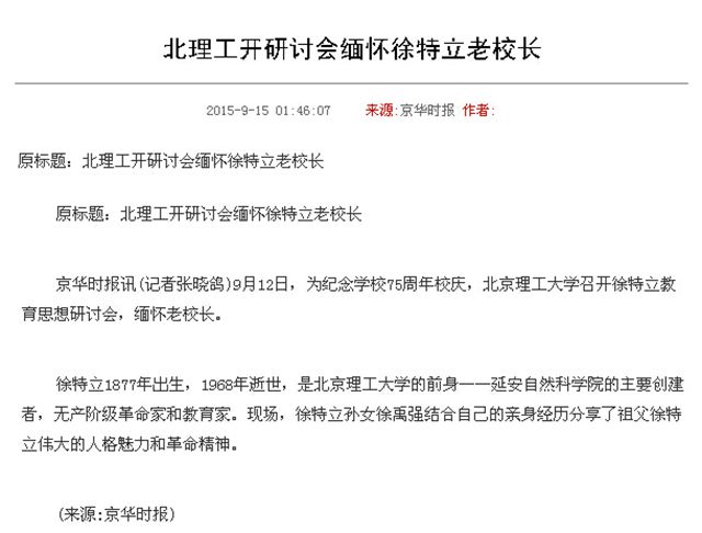 原文标题:北理工开研讨会缅怀徐特立老校长