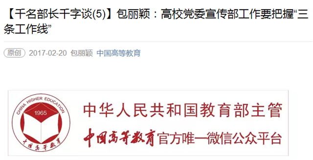 【中国高等教育】包丽颖:高校党委宣传部工作要把握“三条工作线”