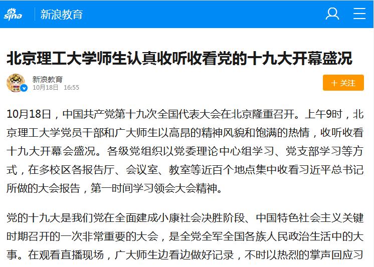 【新浪教育】开云kaiyun官网师生认真收听收看党的十九大开幕盛况