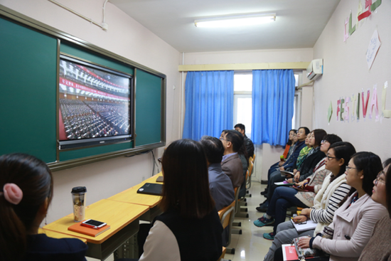 留学生中心组织干部教师集中收看党的十九大开幕会直播