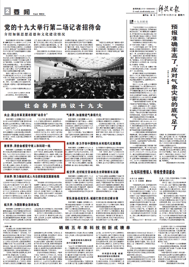 《科技日报》教育界:用使命感坚守育人和科研一线