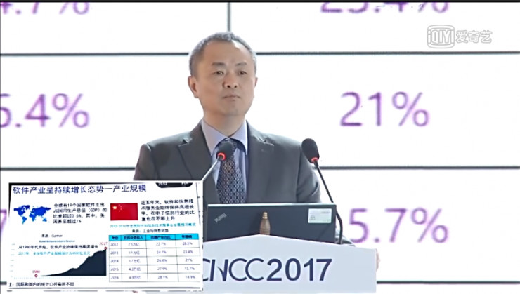 感谢大会给的这个机会!近几年中,我在不同的场合也做了很多不同的报告,但是这几年都是被动地被拉去讲大数据,后来想想,差点把自己的主业忘了。现在软件很重要,我们每天的生活都离不开软件,可能大多数人每天早上起床的第一件事儿就是打开某个APP。所以我今年给自己订了一个小目标,但凡有机会做报告,我就只讲软件,也是为本行业的人呼吁一下,所以我今天讲的题目很大,软件定义一切。