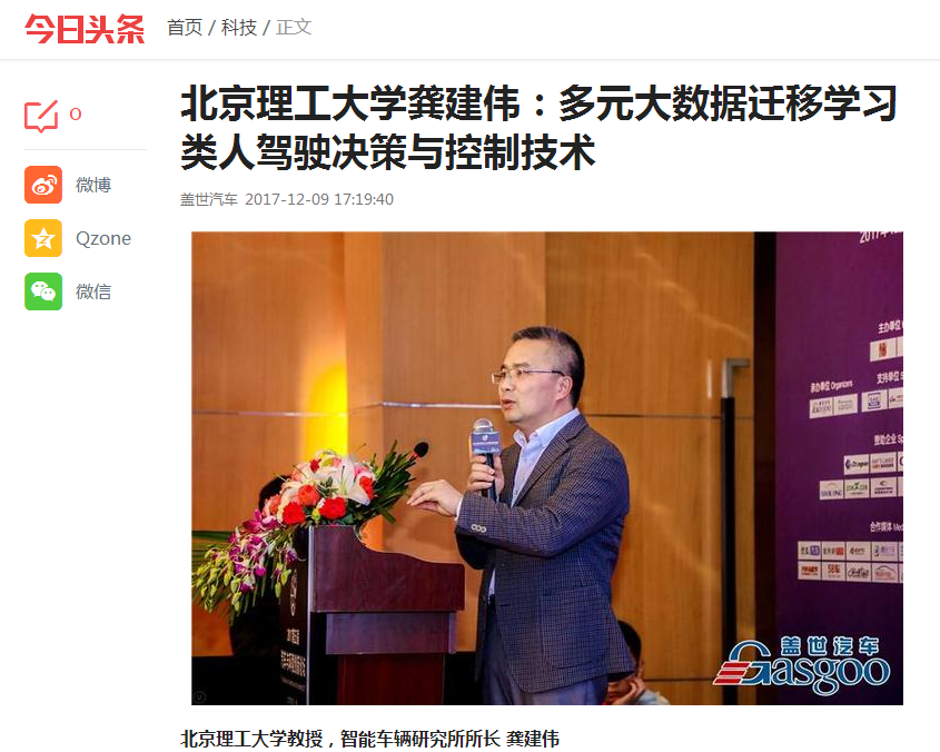 【今日头条】开云kaiyun官网龚建伟:多元大数据迁移学习类人驾驶决策与控制技术