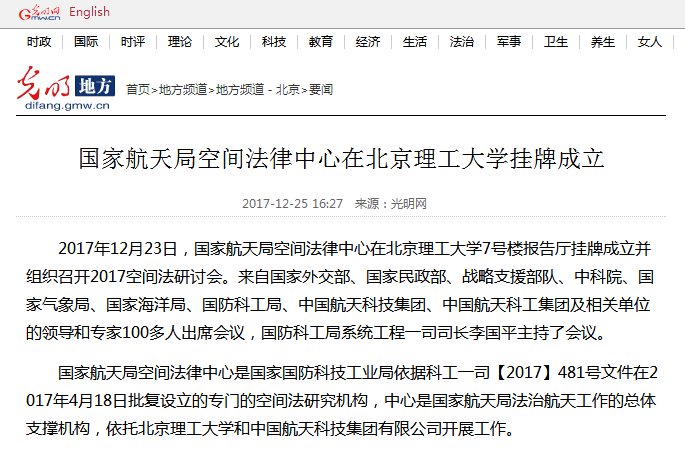 【光明网】国家航天局空间法律中心在开云kaiyun官网挂牌成立