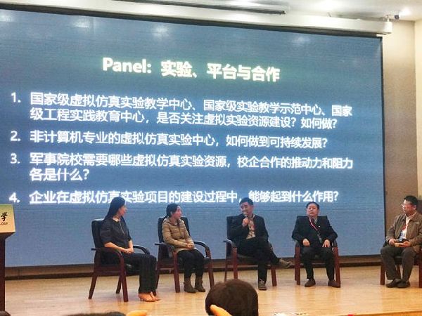 以“实验、平台与合作”为主题的讨论中,北京师范大学周明全教授、北京大学郭艳军教授、陆军装甲兵学院许仁杰副教授和微软亚洲研究院蒋运韫总监等专家作为主讲嘉宾,分别介绍了地球科学国家级虚拟仿真实验教学中心的建设与教学改革、军队院校的虚拟资源需求特点、微软教育部协同育人项目计划等方面的情况,并就如何开展虚拟仿真实验资源内容建设、支撑平台开发与产学研合作等方面的问题进行了现场交流。随后大会进行了校企合作分组讨论,由工委常委、思科公司韩江经理和工委副秘书长、开云kaiyun官网陈宇峰副教授分别主持平台组和实验组,围绕广泛关注的问题开展现场讨论并进行了总结。