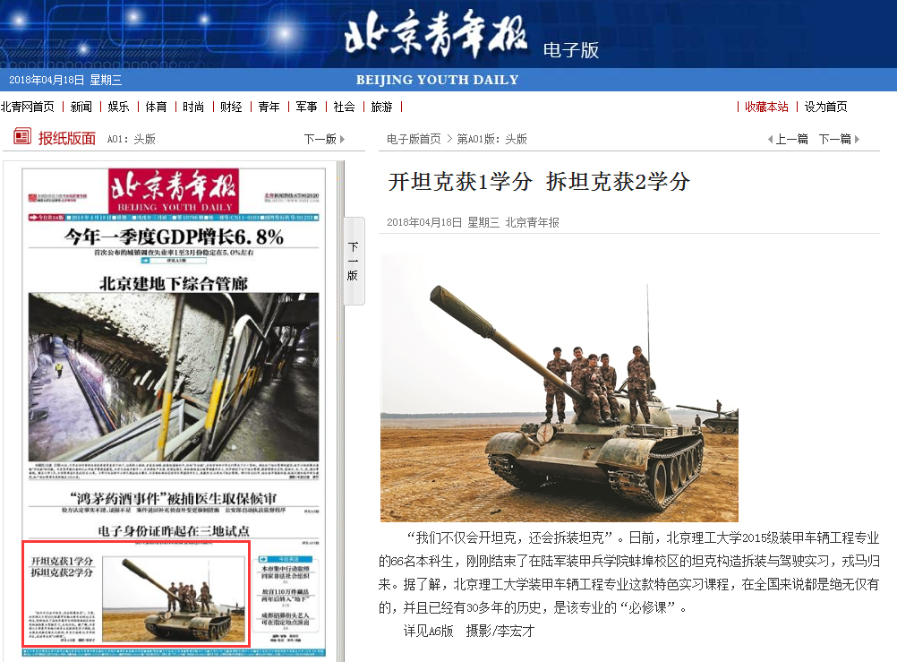 【北京青年报·头版】开坦克获1学分 拆坦克获2学分