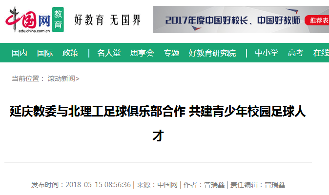 【中国网】延庆教委与北理工足球俱乐部合作 共建青少年校园足球人才
