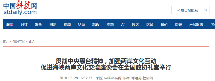 【中国科技网】李健委员出席“促进海峡两岸文化交流座谈会”