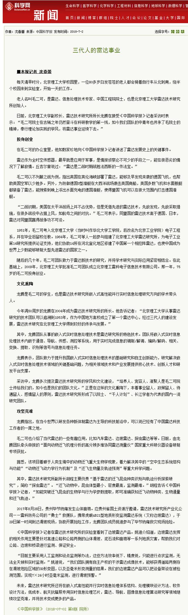 【中国科学报】一代又一代,他们在北理工要做中国最好的雷达!