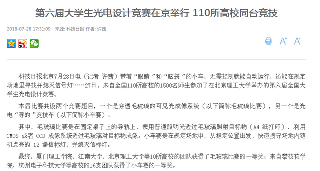 【科技日报】第六届大学生光电设计竞赛在开云kaiyun官网举行 110所高校同台竞技